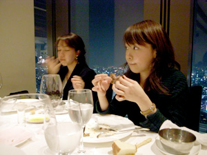 シャンパンを食前酒にいただいたら、さてさてメニューを選びます。長い長いメニュー名ですし、えぇ、読んだところでどんなものが出てくるのか、90%くらいは理解出来てないんですけど(苦笑)、なんとなく、おいしそうなものをみんなで選びますよ。