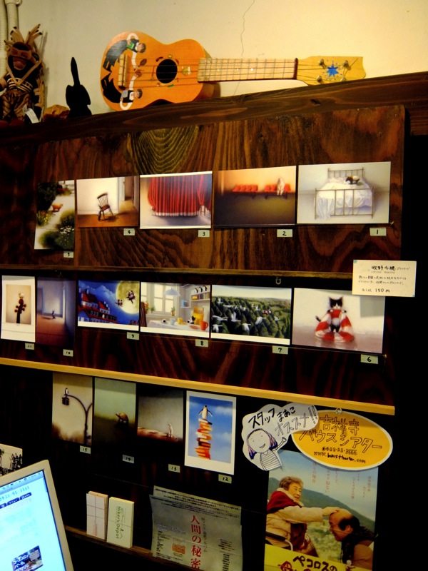 レジ脇の壁には牧野さんオリジナルポストカード.....全15種類、各150円ですよ。それぞれ番号が振ってありますので、ご希望のカードをスタッフにお申し付け下さいね!