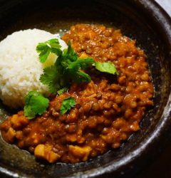 塩豚とレンズ豆のスパイストマト煮かけごはん