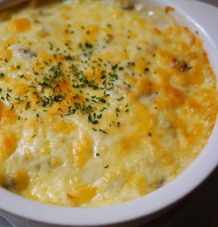 さてとそんな今夜のおススメはあつあつ!「じゃがいもとたら、きのこのグラタン」