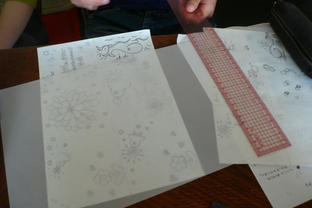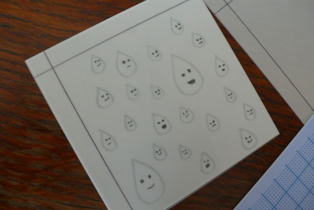 のだみ作品。イラストをトレース中。顔の部分が細かいので、カッターでくり抜くのが大変そう。