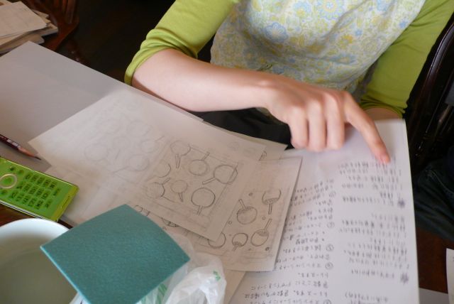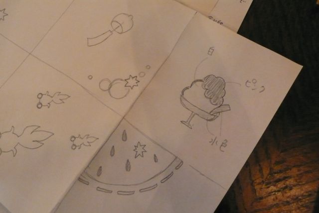 ホーリーのアイデアイラスト。ホーリーは自分で作るお菓子のデザインも考えているだけあって(クッキーにアイシングでイラストを描いたお菓子が得意)絵も上手だし、デザインをきっちり決めてきます。