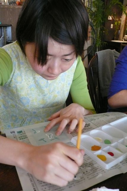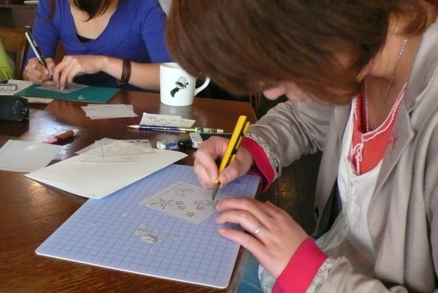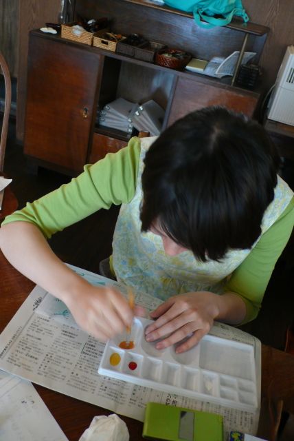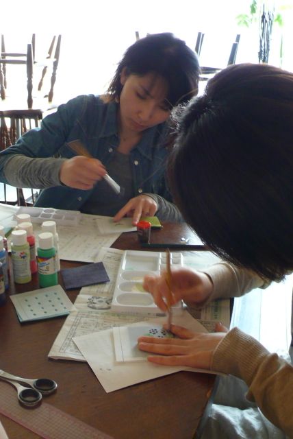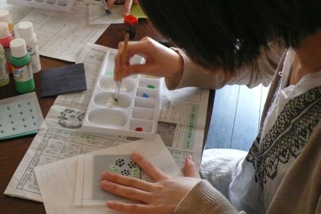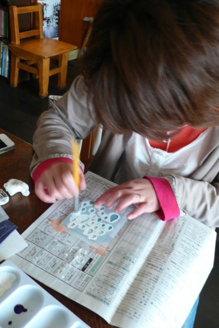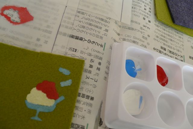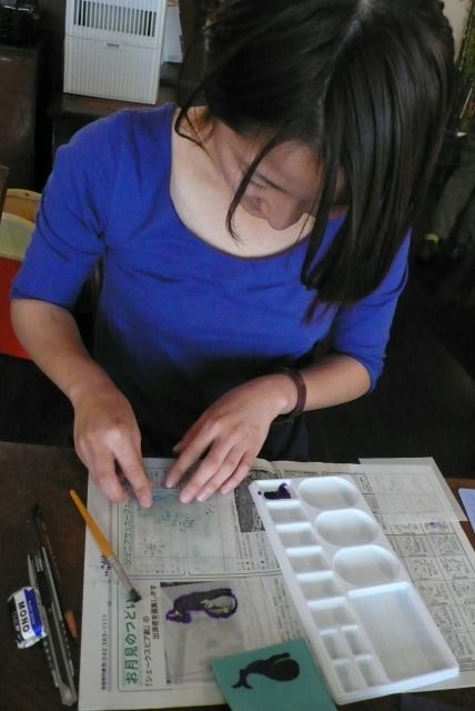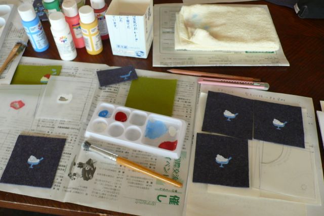 さてさて、はまちゃん連載も3回目、いよいよ作業は一番楽しいところ!....版を作って、フェルトに色付けと進んでまいります。えぇ、みんなどんどんと集中力が増してきて.....楽しく、そしてすごく真剣に取り組んでいる様が伺えますね、えぇ、こんなことならワタクシも参加すりゃよかった!(笑....その日ワタクシドモは自宅の庭造りをやっておりました、ハイ)
