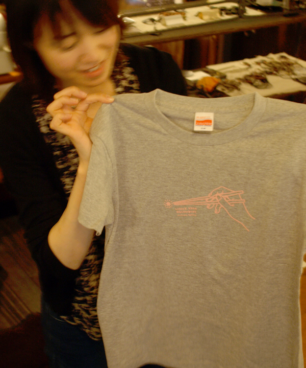 今回は、僕とはま子が版を作っている間にベースになるTシャツに、つぎつぎとアイロンがけをしておりました店長ミヤザキとぬまっち....ふたりが主役ですね、えぇ、実行部隊はこのふたり。