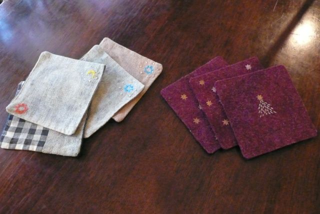 綿麻素材のコースター、去年12月から使っているフェルトのコースター
