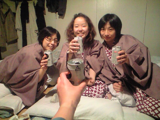 布団の上で…昼にのみ損ねたビールをのみつつ…話も弾みます…ということで、今宵はここまでにいたしとう御座います。(お)