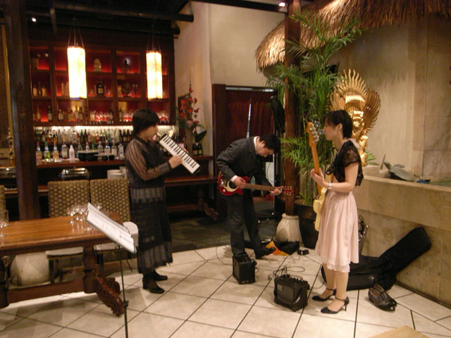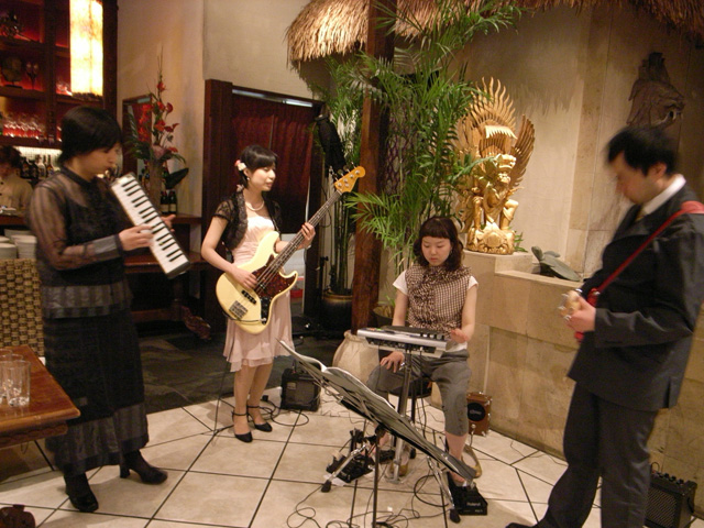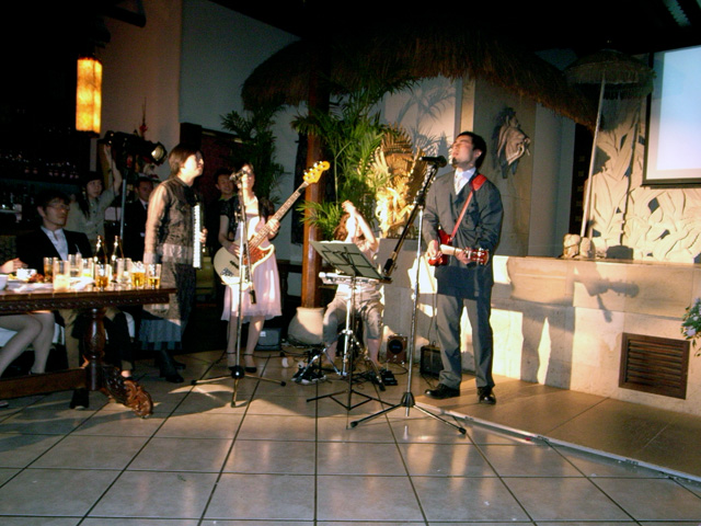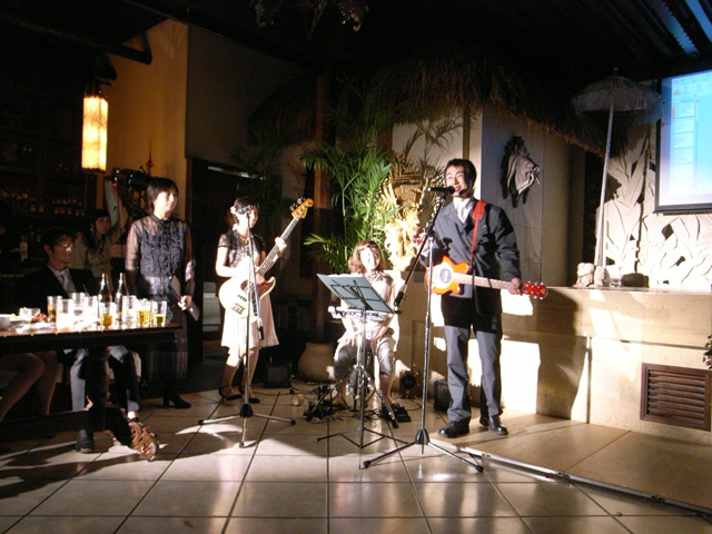 みなさんいっしょに手拍子してくれたり、大合唱だったり.....楽しく演奏させていただきました.....夜中の猛特訓の甲斐あって店長ミヤザキがピアニカソロをバッチリ決めたのが大変うれしゅうございました(笑)。