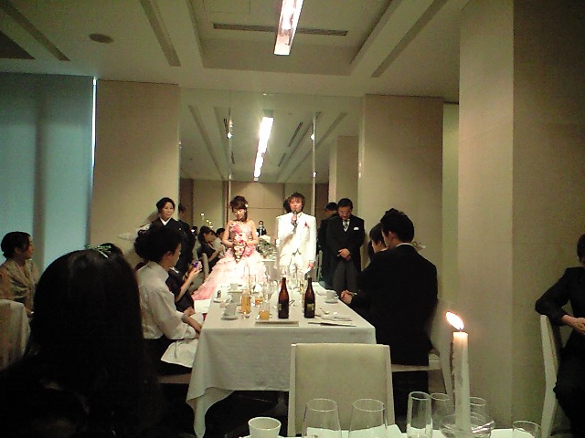花束贈呈から新郎ケンタロー父のウイットに富む素晴らしいご挨拶、トリは新郎ケンタロー君。誠実で力強いご挨拶、また頼もしからずや!(お)