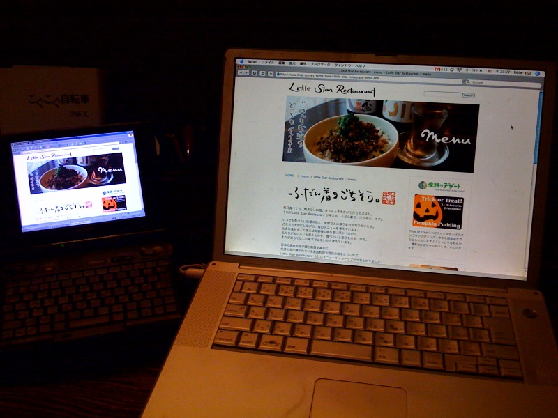 ということで、えぇ、なんとかメニューページ、公開にこぎ着けました。 ありがとうございました。ちいさなVAIOといつもの PowerBook、イイネ。久しぶりにものすごい肩の荷が降りた(苦笑)。 さ、次々といきましょう!(お)