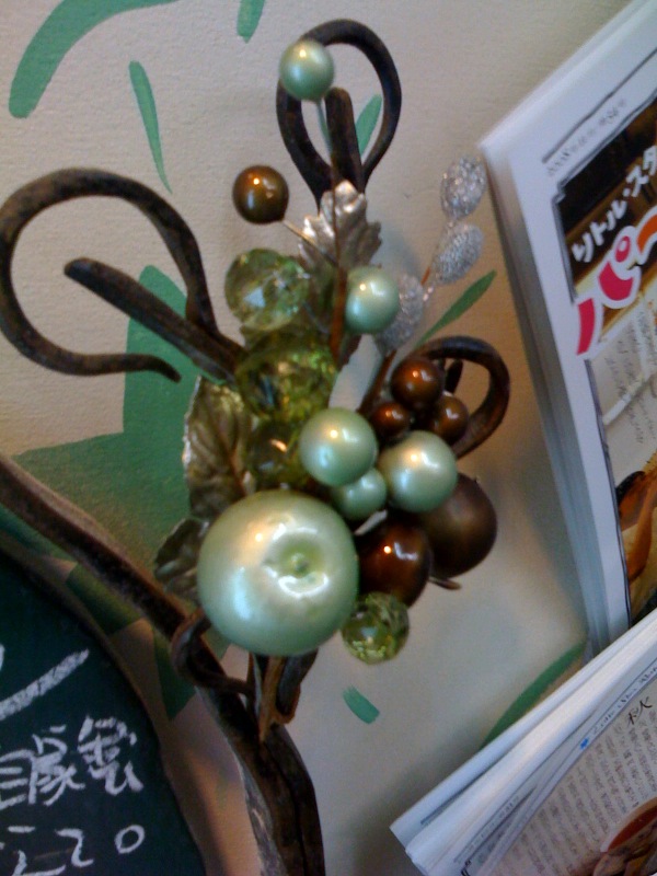 ということで、クリスマスムード一色の今日この頃でございますが、当 店、いつものごとく出遅れておりますね(苦笑)。ま、それでも、下の黒 板のところに小さな、ややシックな飾りをつけてみました…えぇ、リトル スターレストランのほんのりクリスマス(笑)。(お)