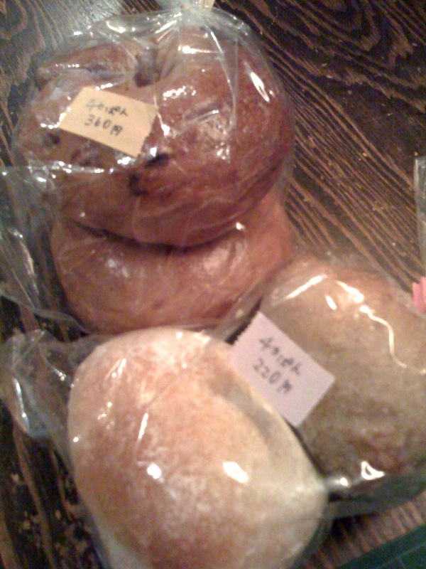うちのコーヒー豆をお願いしております三月珈琲工房で毎月第三日曜日に 開催されております「チカぱん」。うちのお馴染みのお客さん、チカコさ ん手作りパン…毎度完売御礼、当店的にも営業日、買いに行くこともでき ず…と、そんな本日、豆屋のカイさんがちょっと残ってたのを持って来て くれました!明日と言わず、今日たべよう!イェイ!(笑)(お)