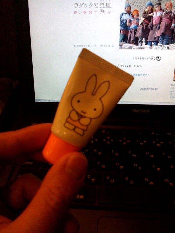 今週は手荒れのひどいワタクシ…ホール係だって洗い物とかありますし、この季 節、おぢさんだってホントに潤いが欲しい今日この頃。かわいいミッフィーの ユースキン(おまけ)愛用中…はやく春が来ないかな〜。(お)