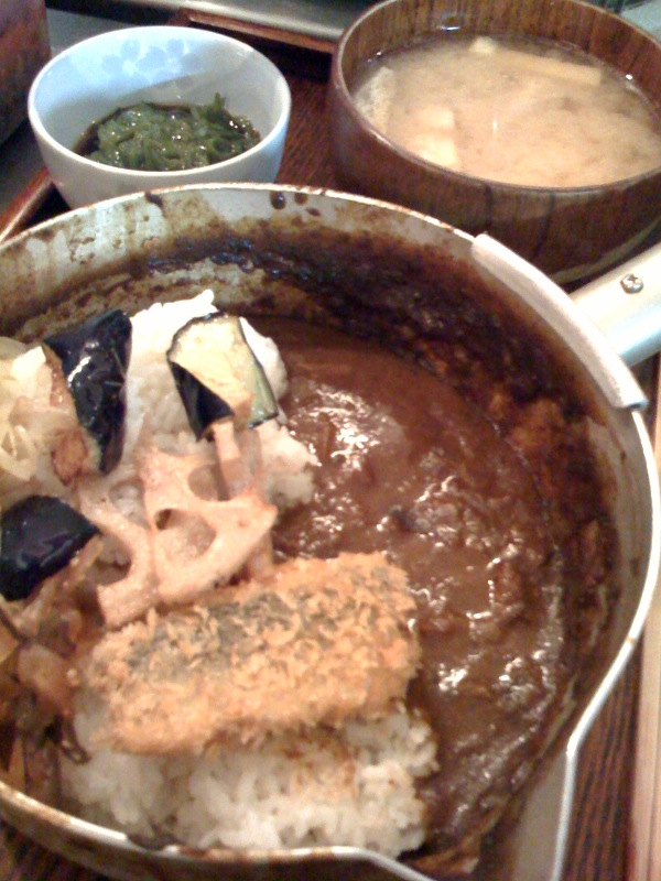 ということで、鍋カレー出来上がり〜っ!(笑…出来上がりって!)いいね〜、 うれしいね〜、いただきまーす!…って、メニューとしてお出しすることは決し てございませんので、くれぐれもご了承下さいね!(笑)(お)