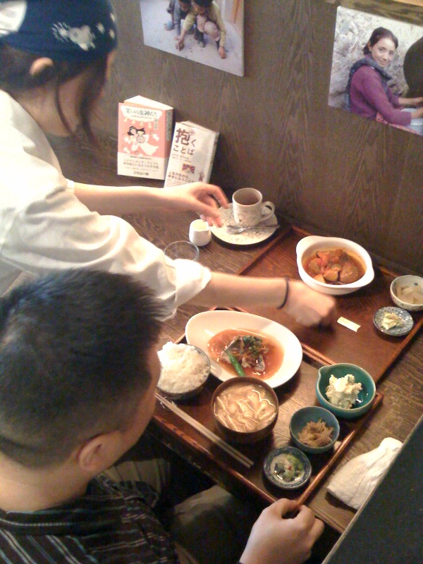 昨夜ご来店のおなじみのお客さん…本日のランチ日替わりメニューが、二 品とも大好物…じゃ、明日は両方いきます!と、宣言通りのお昼時。 えぇ、ごはん、おみそ汁、ドリンクだってすべて二人前…お見事でありま した!(笑)(お)