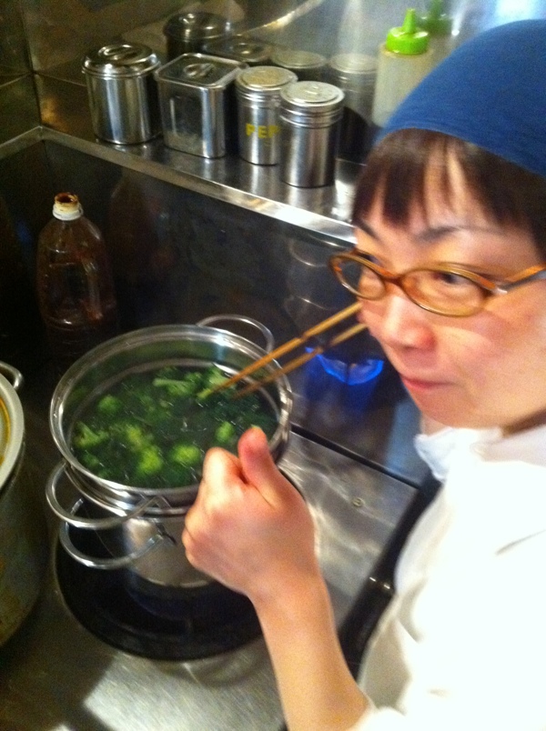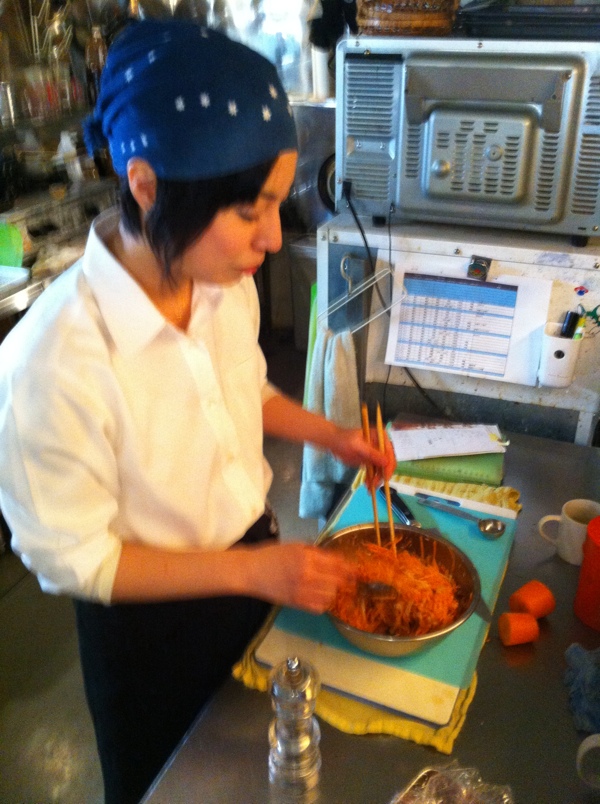 くろちゃんが仕込中の「にんじんのスパイスサラダ」…シャキシャキ細切りにしたにんじんの、その色がなんとも鮮やかでおもわずパチリ。実はこのメニュー、前にきめちゃんが…うち(自宅)で花見をした時に持って来てくれたサラダをもとに、くろちゃんがうちのメニューに加えてくれた一品であります。よろしかったら是非!(お)