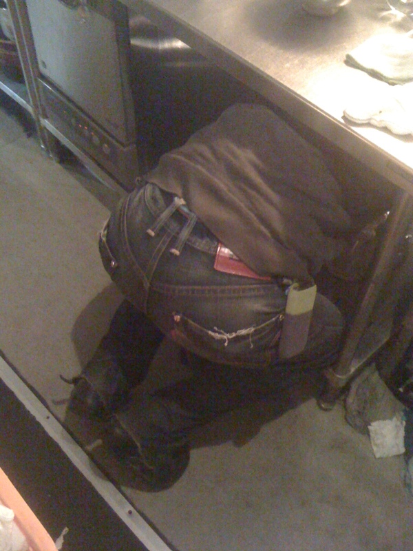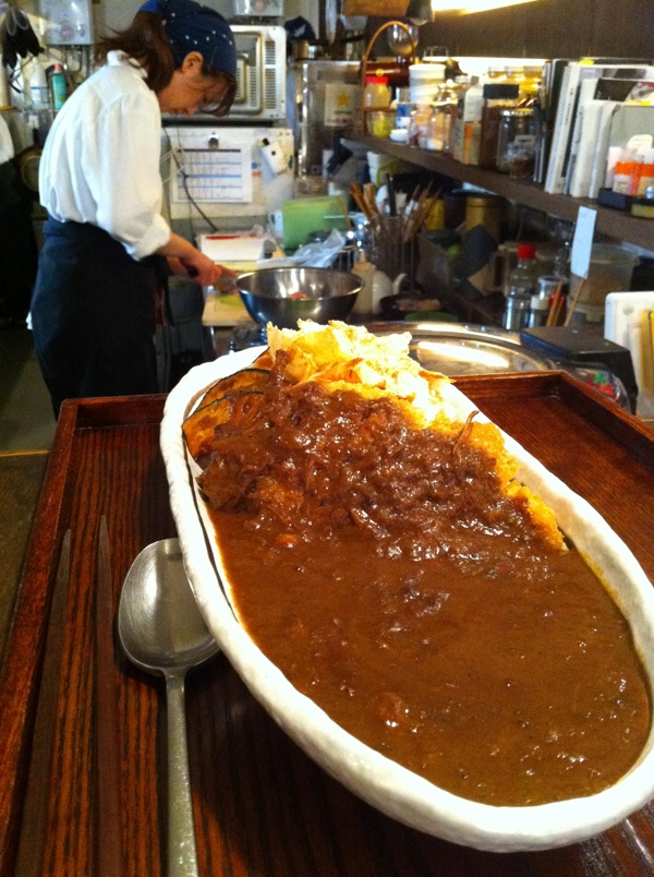 忙しかった日曜日のお昼時!......ここはババンと賄いもチキンカツカレー!みんなでいただきましたよって、もちろんワタクシこのようにスペシャルサイズでございます.....あー、もうハラパンだぁ!(苦笑)(お)