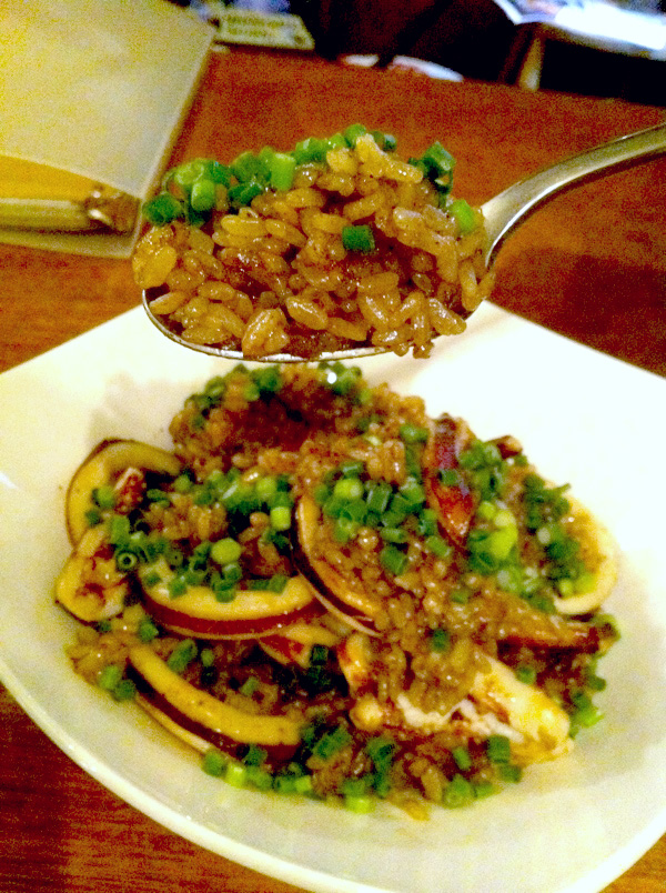 しばらくお休みいただいた.....スルメイカのワタ炒めチャーハン!えぇ、みなさんの熱烈なるリクエストにお答えして、この三連休は出来るだけ毎日ご用意いたしたいと思います.....って、写真、昨日ご来店のお客さんにお出しした時、わざわざスプーンにのせてもらって、えぇ、シズル感を出していただきました(笑)。ご協力、ありがとうございました(笑)。(お)