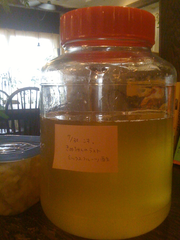 フルーツを引き上げまして、シロップはペーパーでこしました。黄金色の綺麗なお酢シロップの出来上がり。前のものがまだ少し有りますので、そちらが無くなり次第、今週末にはこちらのミックスフルーツ酢がお目見えするかと思います〜!(ぬ)
