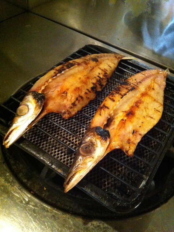 あぁ、こんがり焼かれております、かますが二匹....いや、かますって、すごく独特な顔をしておりますよね、えぇ....って、言ってしまえばナンですけど、いや、決して美男子ってわけではないですし(オトコと決めちゃってますけど)、えぇ、愛嬌がないわけでもないですけど.....いや、これがなんというか、えぇ、ちょっとお付き合いするには覚悟が必用かもしれないなんて、えぇ、最初にかますをたべた人はどんな気持ちだったんだろうなとか....ま、おいしいからいいんですけどね、かますの一夜干し!(笑)今夜もさっぱりサラダで登場です!(お)