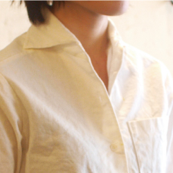 - 素材はごく自然なヨレとシワが出るリネン50%×コットン50%という理想的な生地、動き易さを保ちながらも身体のラインが綺麗に出るシルエット。シャツの顔である衿は「カッタウェイ」というフォーマルな形。カジュアルなシーンでも清潔感を保てるデザインにしました。