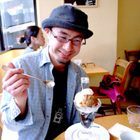 しかしなにより僕がこのcafe vivement dimancheで感激したのは、ものすごく店員さんのかんじがいいところでありました。このお店のマスター、堀内隆志さんは雑誌に連載を持ってらっしゃったり、ラジオに出演されたり、とにかくこの業界ではホントに有名な方ですし、僕としてはそれをちょっとハスに構えてナナメに見ようとするところがあったと思います....でもね、そんなの、ホントいっぺんに吹っ飛んじゃいましたよ、ハイ、僕が悪ぅございました、ごめんなさいって。