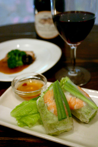 紅玉とチーズ、豚肉の揚げ春巻き