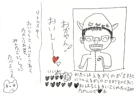 今年もなんだかんだいってあっという間だったなと.....でもかなり盛りだくさんでもありますね、思い出してみると.....1月には去年折ったワタクシの歯が正式に入ったり(苦笑)、春はキッチンスタッフ・ガヮちゃんにホール係のタカダネェサンの加入、3周年の新リトスタTシャツ....和風の柄が大好評で、しかもAllAboutにも取り上げていただきましたね.....夏にはキッチンスタッフ・黒ちゃんが加入して、9月は言わずもがなの店長ミヤザキとワタクシokayanの結婚披露会「月と太陽」、3年ぶりに僕らの小さな雑誌「季刊さはん」を復刊させたり(うまくまだ宣伝できてないですけど.....)、キッチンスタッフ・ヒデキの卒業.....ヒデキ祭と珍伝票大賞も楽しんでいただきました......と、そこまではノリにのりまくってましたね。