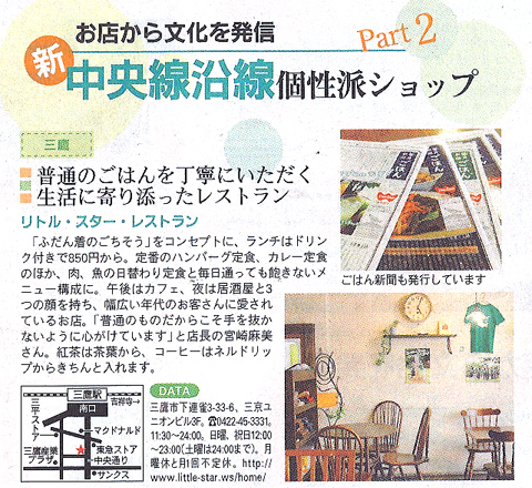 えー、先日「ウラ★スタ」でも取材風景をチラリとご紹介しましたが、本日(8月30日)付け発行の「サンケイリビングむさしの」の「新中央線沿線個性派ショップPart 2」という特集に当店を取り上げていただきました。えぇ、BBSですでにちょっと触れられておりましたが、えぇ、リビングに載っているというのは、これですね。