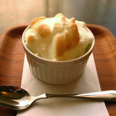 しっかり泡立てたメレンゲを軽く焼いた白いケーキ.....その白いメレンゲをパリリと破れば、メレンゲの下にはレモンを絞ってつくった甘酸っぱくてほろ苦いレモンクリーム!