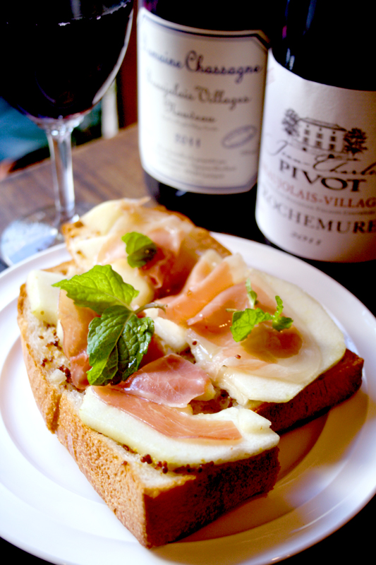 今年はね、去年ご好評いただいたタルティーヌ....ちょっと具を変えまして「洋梨と生ハムのタルティーヌ」!