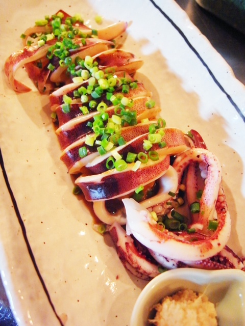 新鮮なイカを、肝ごとさくっと丸茹でしたら、(茹ですぎないのが、キモですね、文字通り....)ざくっと肝ごと切って、おしょうゆをちょろりとからめていただきます。生姜を添えてもちょいとイイネ。もう説明なんかいらないですよね、旨いに決まってる!