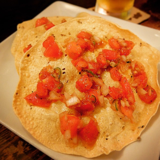 本場インドから取り寄せた、豆の粉で作ったスナック....ちょっとスパイシーな風味も辛味も、えぇ、そのままたべてもなかなかのビールの友なんですけど、このスナック揚げたてあつあつの上に、フレッシュでみずみずしいトマトとたまねぎのみじん切りをベースにした、辛〜い具をのせて、さくさくいただきます!