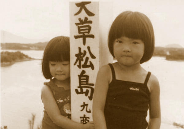 店長ミヤザキ母で当店永世料理長は故ミヤザキヨウコのふるさとは熊本!...幼い頃のミヤザキアサミちゃんに妹のしっぽちゃんが訪れたのは日本三大松島のひとつ「天草松島」...口を真一文字に結んだ凛々しい記念写真が、今の店長ミヤザキを彷彿とさせますね(笑)。