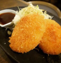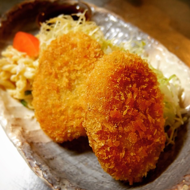 いやいや、当たり前ですけどつぶつぶとうもろこしは缶詰じゃないですからね!ほんのりバターで、おいもとコーンの甘み!からり揚げたてあつあつコロッケ!ソースをだぼだぼかけて一目散にたべましょう!いや、ほんのりヤケドにも注意です!(笑)