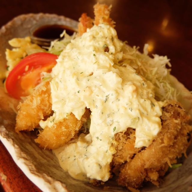 からりと揚げたてあつあつぷりぷりのエビフライにこちらもぷりぷりしめじのフライ!ここに濃厚でクリーミーな自家製タルタルソースが、これまたいい塩梅で、あぁ、まったく熱いうちにたべるしかないですね。タルタルたっぷり、そして悩ましいのがやっぱり横でおとなしく控えておりますトンカツソース(笑)。あぁ、ダブルのソースをだぼだぼつけてでたべるしかないですね....えぇ、もちろん生ビールうってつけ!(笑)