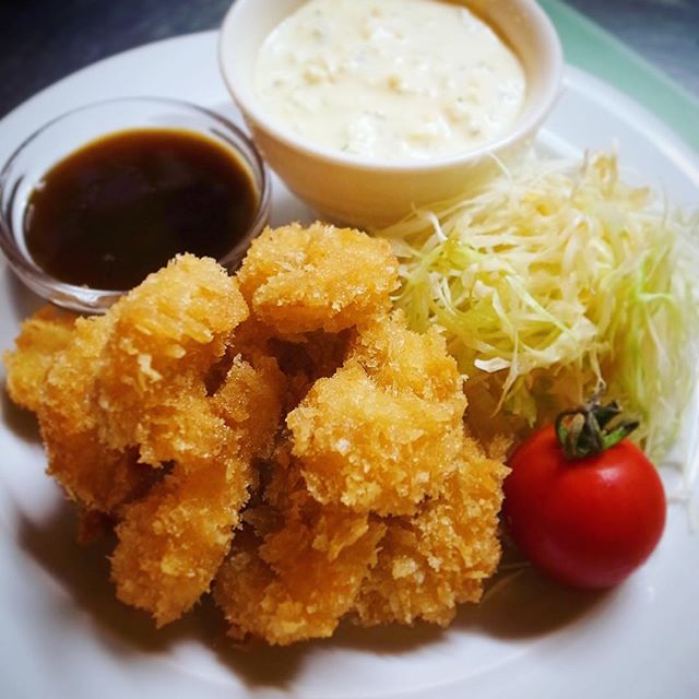 エビフライにするにはちょっと小さすぎるよねと、ぱくりとひと口サイズの小エビ...じつは天然の車海老ですよ!とコロモをつけてからり揚げたてフライにすれば、いや、思いがけず濃厚なエビの風味が満点であります!もちろんあつあつ小エビのフライは自家製のタルタルソースがイイネ!
