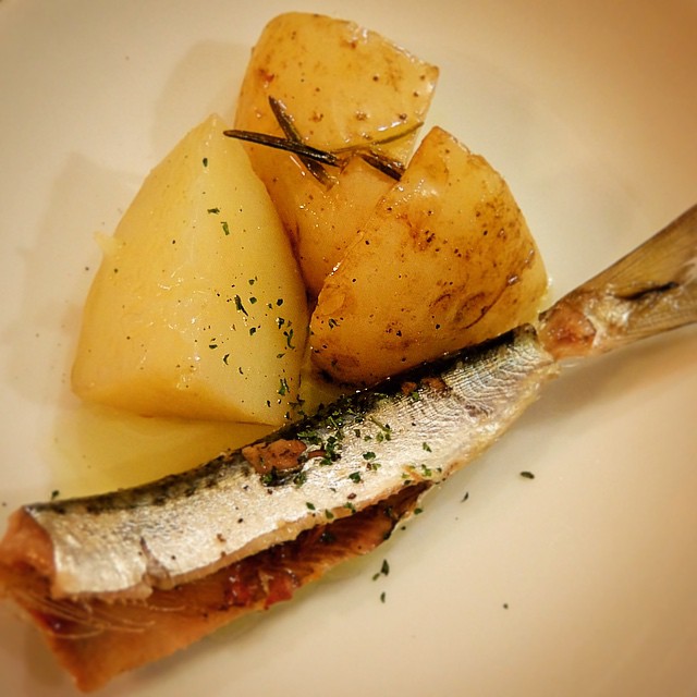 ローズマリー・タイム・ブラックペッパー、にんにくの入った、食欲を刺激しまくり、香りのよいオリーブ油の中で新じゃがといわし、コトコトコトコト煮込みました....旨味がしっかりとしみ込みます!ほくほくじゃがいものおいしさと、青魚のいわしの臭みが....嫌味が消えて、旨味がより引き立つ.....それをやさしく包み込むような旨味.....おいしくたべる秘訣は、じゃがいもといわし.....別々じゃなくてさ、いっしょにたべるんですよ、えぇ、そうすると旨さ倍々増でありますよ!ワインとか、ビールなんかにぴったりですね。