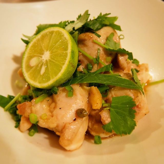 山椒の実とごま油をいっしょに火にかけて香りを出したら、じゃじゃっと鶏肉を入れて、やさしくやわらかく酒蒸し!ふっくら鶏肉のおいしさ!山椒とごま油の香り!蒸し立てあつあつ、三ツ葉を散らしてすだちとぽん酢でさっぱりお召し上がりです!