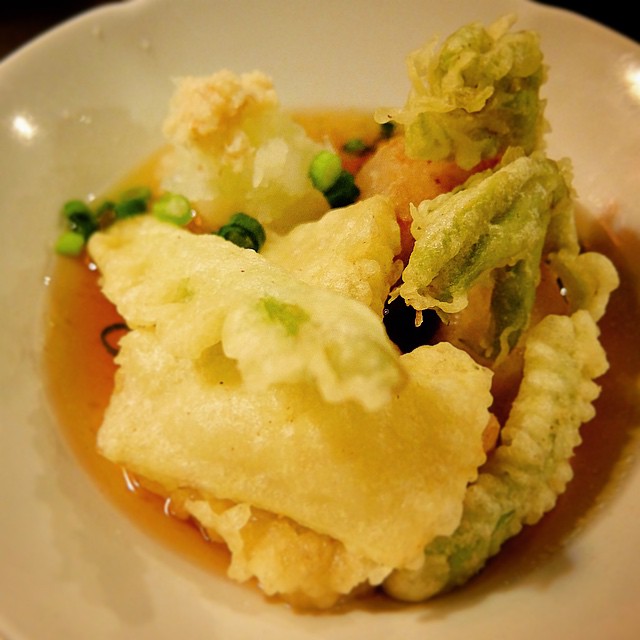 さっくり素揚げにしたねっとり里芋と独特な風味は春の山菜、山うど...やさしい味のあったかだし汁と、大根おろし、しょうがをぴりりと効かせていただきましょう!...春のおいしいさとやさしさ、もちろんあつあつのうちにお召し上がりくださいな!
