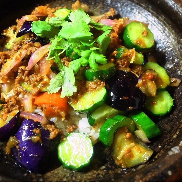 ここんところ人気サクレツ!キーマカレー!じっとり蒸し暑い今日この頃...スパイスでカラダも気持ちもリフレッシュ!やっぱり夏はカレーがうれしいね!
