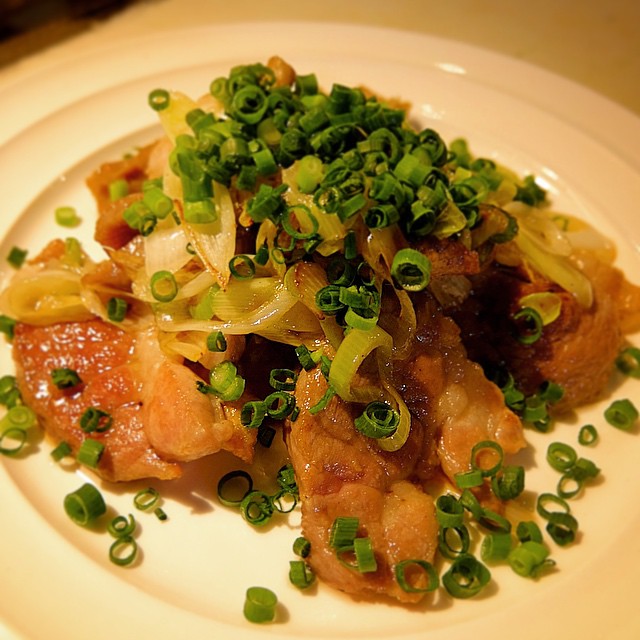 塩をもみ込んでしばらく寝かせ、熟成させた塩豚を程よい大きさにスライスしたら、長葱とあわせてシンプルに炒めます。もう塩豚に塩味も旨味もすべてつまっておりますから、その味を素直に引き出してあげるだけでいいわけでありまして、えぇ、長葱でちょいとアクセントを加えれば、実に旨味に満ちた素晴らしい塩豚の炒めものの出来上がりなのであります。
