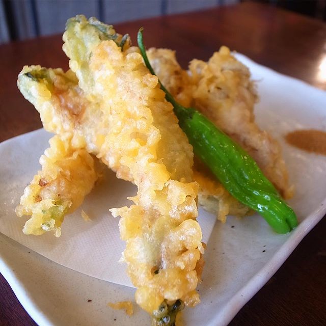 茄子は「ナス科ナス属」、ズッキーニは「ウリ科カボチャ属」....見た目全然似ておりませんけど、なんとなく食感は似ておりますこのふたつの野菜、でも、そうは言いつつ、やっぱり味わいの異なる茄子とズッキーニ。2つの野菜で2種類のはさみ揚げ.....って、2つの夏野菜で挽き肉あんを挟んだジューシーな旬のはさみ揚げ。からりと揚げたてあつあつを、ピリリとカレー塩でお召し上がりいただきます。