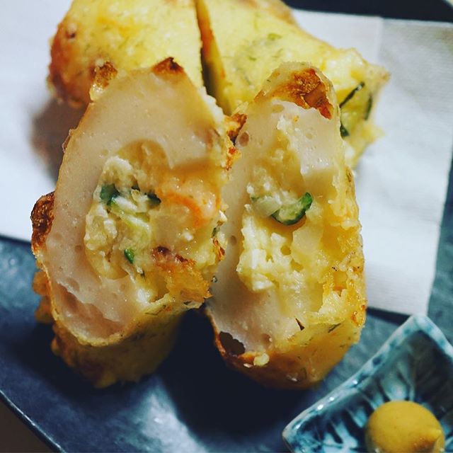 穴があったら入りたい...辛子蓮根の例を挙げるまでもなく、熊本では穴があったらなにか詰めてしまうわけでございますよ(いや確かではございませんが)...ということで、ちくわの穴...ポテトサラダを詰めてしまえ!と、当店自慢のポテトサラダ、定番中の定番メニューをぐいっと詰めてしまいましたら、コロモをつけて、からり揚げたて!あつあつのポテサラちくわ天!