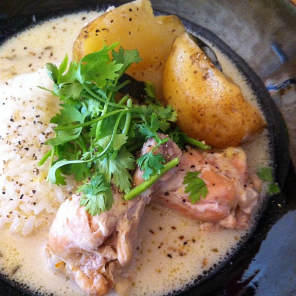 ほっくりじゃがいもと手羽元から出る旨味......そこにココナッツミルク、そしてナンプラーの風味、もちろんアクセントはパクチー!の南国アジアなスープをさらりとかけた汁かけごはん!.....あー、こりゃ旨いに決まっておりますね!