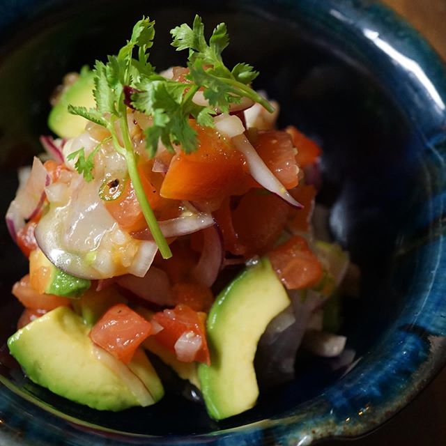なぜならコトの発端は高知の森田農園さんから届いた青唐辛子!これを使ってなにか作るならそれはメキシカン!!と店長ミヤザキ(笑)。それならばと「サルサメヒカーナ」と呼ばれるメキシコ国旗の赤・白・緑の色味に由来したサルサソースで、今回は真鯛をさくっとあえてみました!