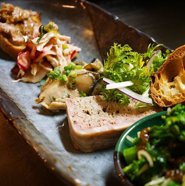 と、そのラインナップはパテドカンパーニュ(ハーフ)に牡蠣のオイル漬け、クリームチーズと金時豆のディップ、菜の花のサラダ、赤かぶと鶏肉のレモンマリネ!なかなかボリューミーで盛り沢山!...ワタクシ当店経理担当的には「ちょっと奮発しすぎじゃない?」とか思うけれども(苦笑)、店長ミヤザキの大盤振る舞い!(笑)なにげにお得なちょこもりですよ!