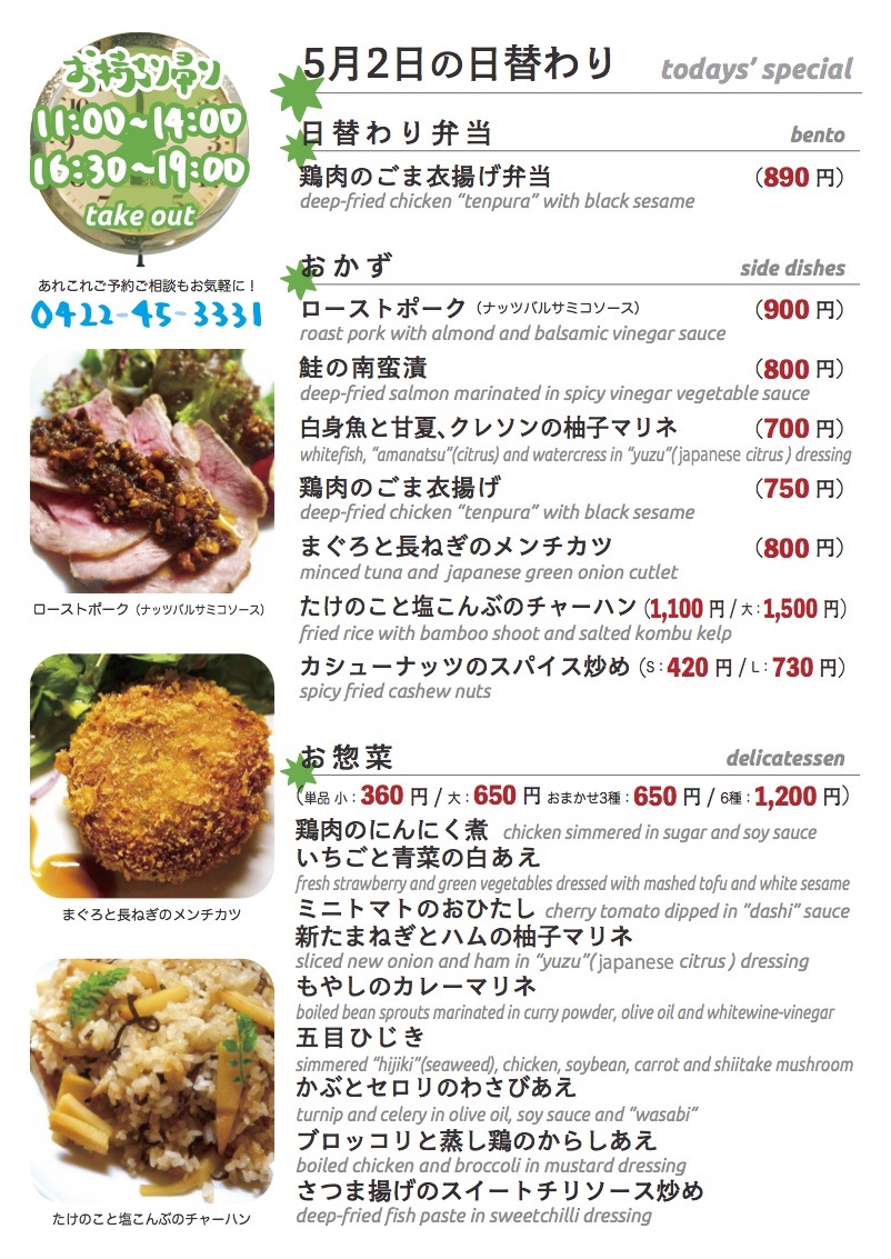 さてとすかっとさくっとGW!とすんばらしいお天気ですっかり三鷹は夏ですなと...ところで当店GWの風物詩と言えば「昭和歌謡週間」!今年はお持ち帰り専門店であんまり店内でお待ちのお客さんはいらっしゃいませんがババンと開催!(苦笑)...今日のお持ち帰り日替わりですよ。