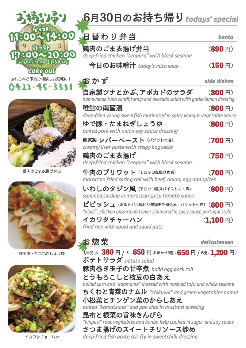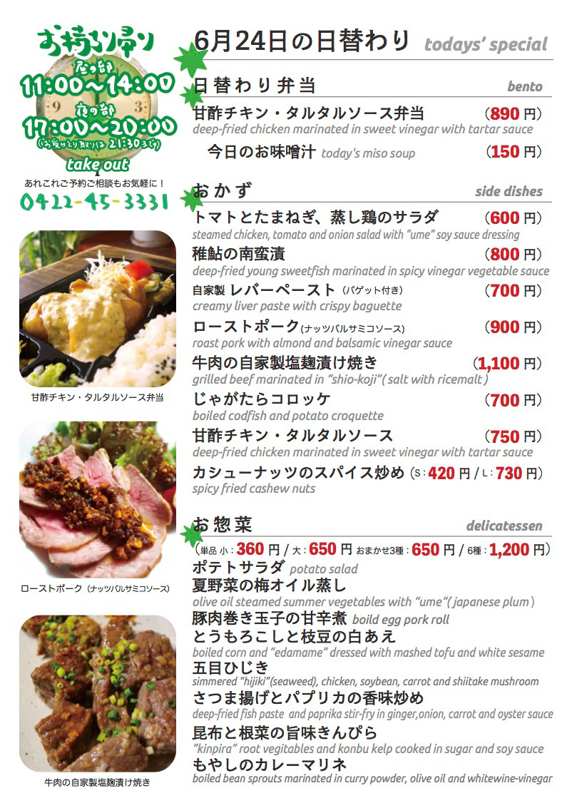 (お持ち帰り定番メニューやご利用方法などはこちらをどうぞ)
