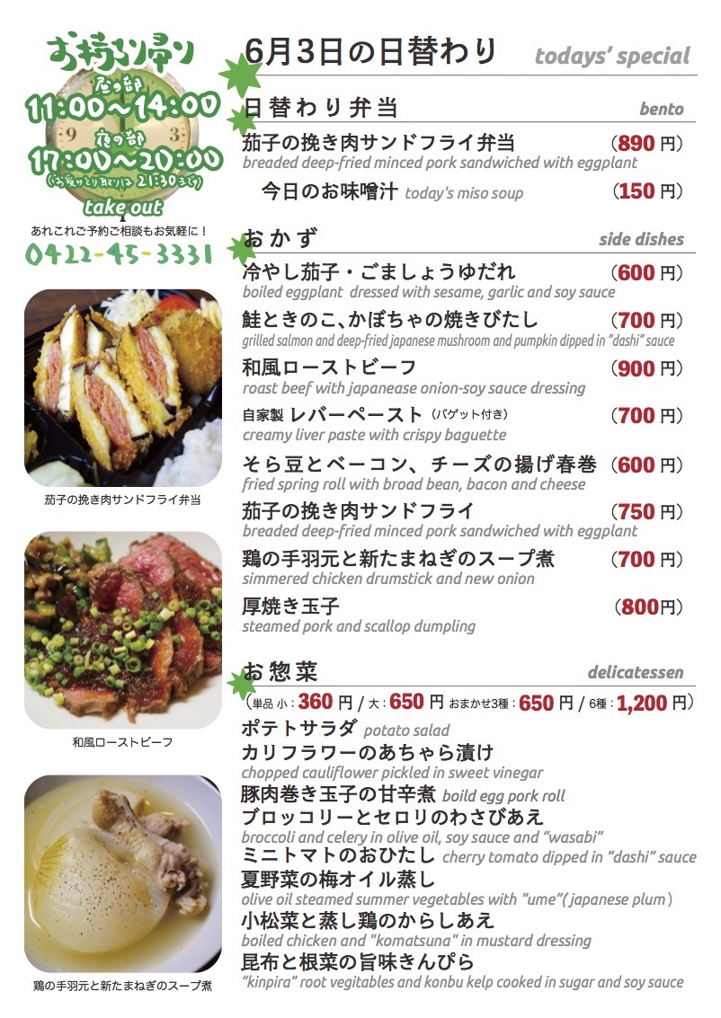 今日も朝からいいお天気!と気温も上がって真夏日目前の水曜日!...と、当店今月の連休は月2でいただく予定です...さらにお休みに限らず状況に応じてあれこれ変化もあるかも?SNSなども要チェックお願いします!...今日のお持ち帰り日替わりですよ。