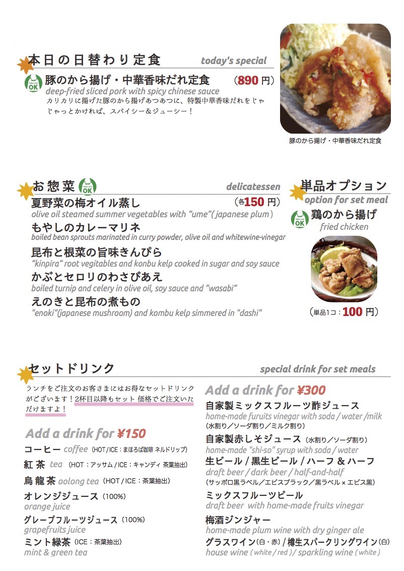(お持ち帰り定番メニューやご利用方法などはこちらをどうぞ)